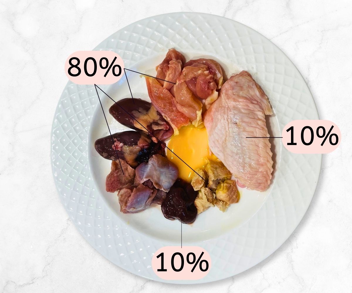 80 10 10 diets are a great start, but they are not complete and balanced. So you will have to use whole foods and some supplements on top of meat, bones, and organs.